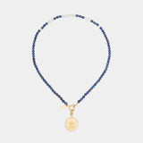 Our handcrafted necklace was beaded by hand with genuine Lapiz Lazuli stones and can be worn with or without the removable charm medallion. It’s reversible, so you can wear the pearls on the front, or choose to display the golden detail and medallion. Our medallion was crafted from a 2000-year-old Roman coin, to which we added modern feminist portraits; our Sophia Charm.